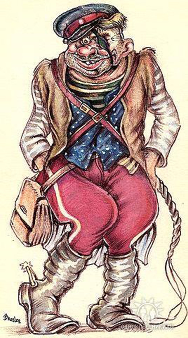 Заведующая костюмерного цеха, по совместительству жена второго художника, увидев эскизы костюмов, выполненных Лешей, сказала, что он в детстве переболел полиомиелитом в последней стадии, и что она еще не видела таких кошмарных рисунков. Не выдержав всего этого кошмара, она изрекла, прямо глядя ему в глаза: «Чем так рисовать, пусть уж лучше мой муж пьет!»